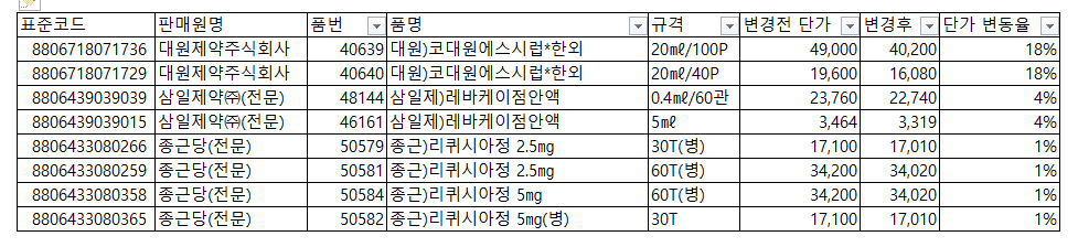 #약가인하 품목
